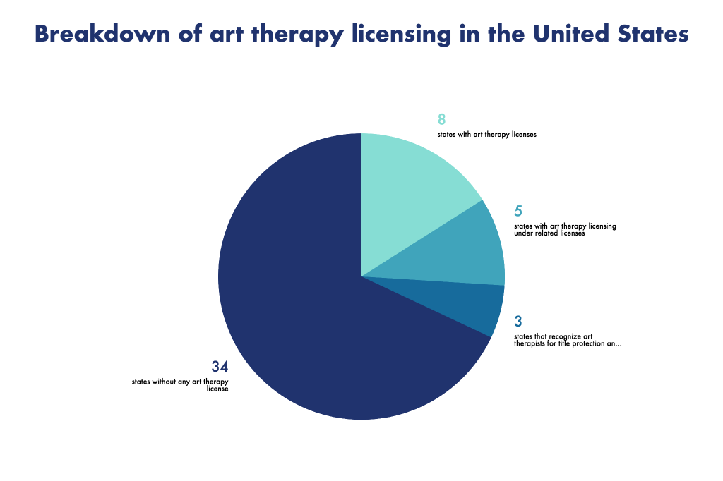 Before the coronavirus, licensing was one of the key issues facing art therapists. Currently, only 16 states have some sort of licensing for art therapists, whether that’s a full art therapy license, art therapy falling under a different license, or recognition for title protection services.